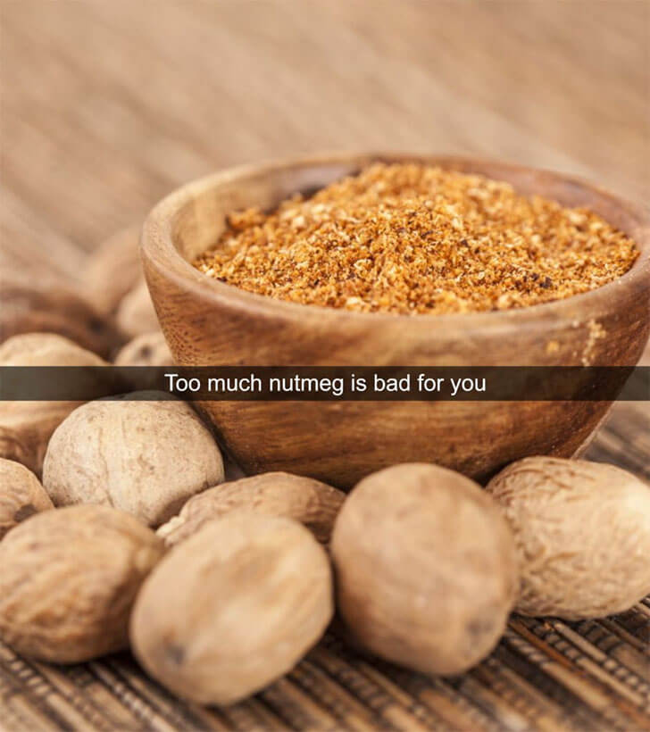 While it’s a valuable spice, excess use can cause adverse reactions. Myristicin is present in nutmeg, which is an insecticide. So it’s better to use this ingredient in moderation. Don’t want anyone to hallucinate because of it!