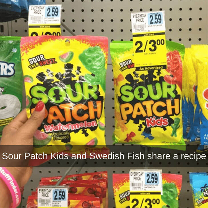The people who have tasted Sour Patch Kids and Swedish Fish might have noticed they taste eerily similar. That’s because these two popular candy brands share a nearly identical recipe. Both are made with a mix of sugar, corn syrup, modified cornstarch, and citric acid, which gives them their sour flavor.